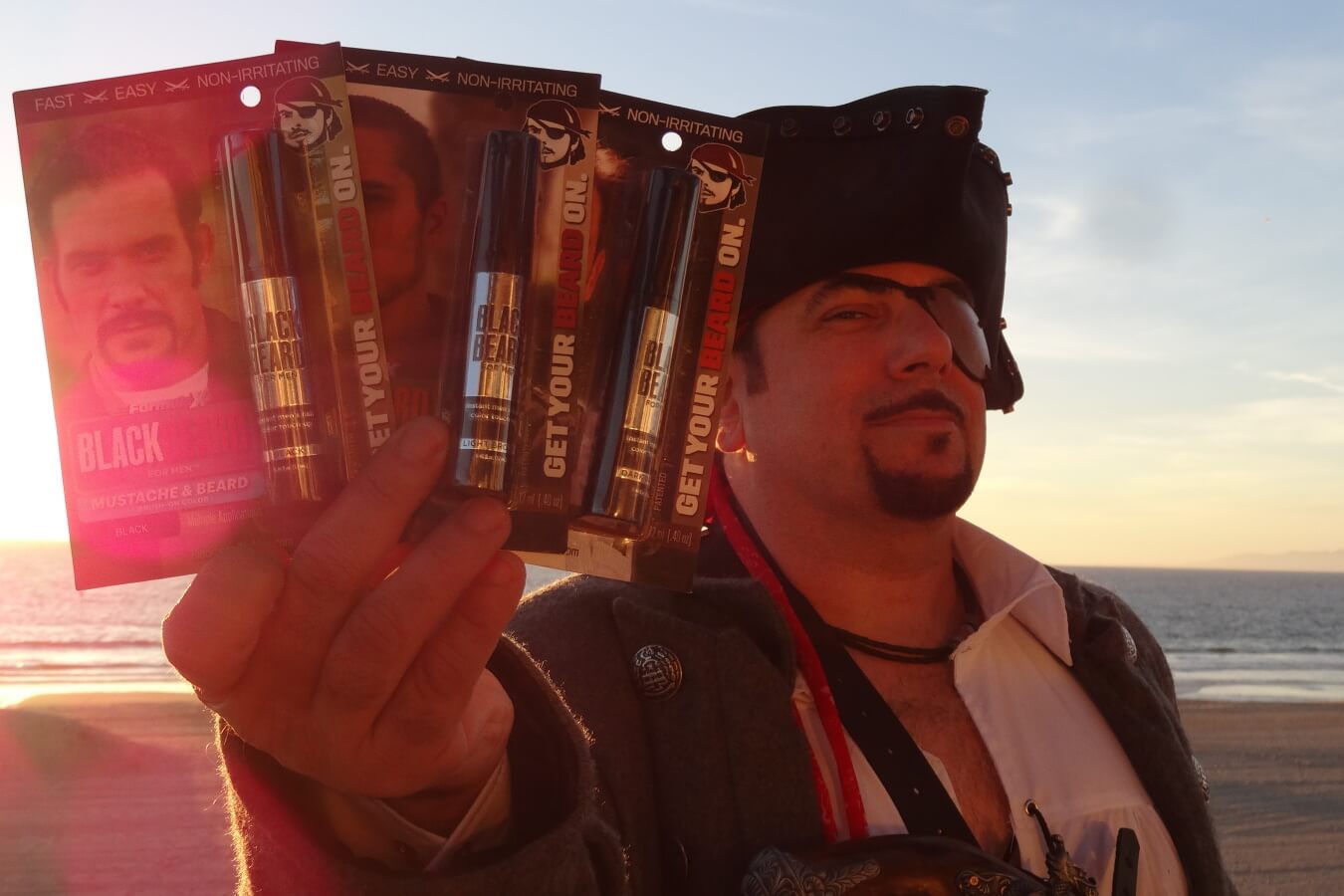 It’s back! Our amazing baker’s dozen (13 pieces) of the one that started it all – Blackbeard for Men Formula X instant, brush-on, patented, beard, mustache, sideburns and eyebrow color. A full year’s supply of mustache and beard color (for most)! The original and still the best instant, hypoallergenic beard color and mustache color. Accept no imitators, lads!